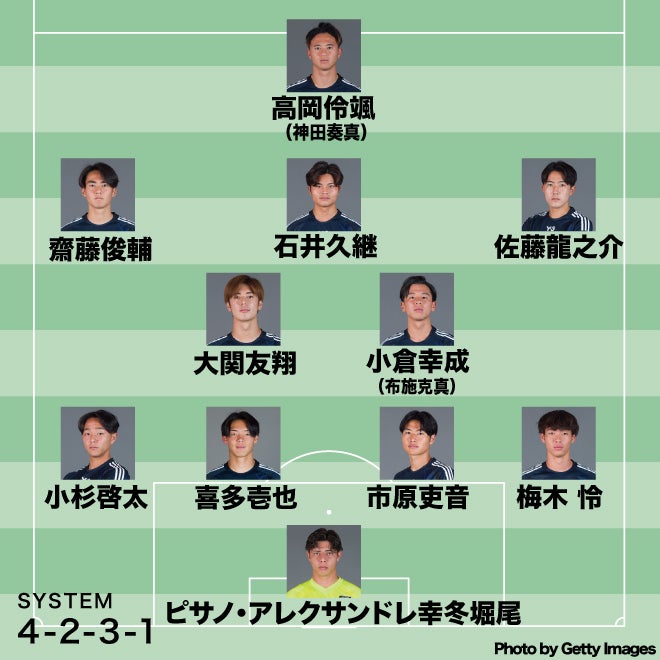 そうした相手の特徴を踏まえ、フランス戦のスタメンを予想すれば、グループステージ初戦のエジプト戦(2-0)に出場した選手がベースになると読む。ただ、相手との相性を考慮した場合、4-2-3-1の1トップにFW高岡伶颯(ヴァランシエンヌ)を置くパターンも面白い。前線から快速を飛ばして相手DFやGKにプレッシャーを与えられるのはもちろん、フランス3部でプレーしているという点でモチベーションも高い。