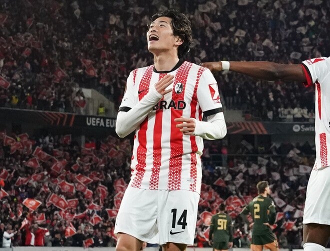 ブンデスリーガ第7節、日本代表MF鈴木唯人が所属するフライブルクは堂安律がプレーするフランクフルトをホームに迎えた。1-2と1点を追う終盤にMFヴィンツェンツォ・グリフォのFK弾で追いついたフライブルクは、終了間際にDFマティアス・ギンターが決定機を迎えるが、ポストを直撃。2-2の引き分けに終わった。