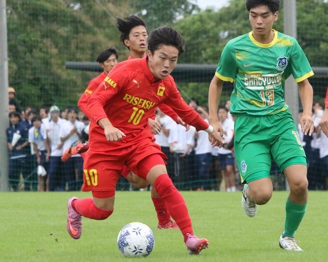 履正社の10番を背負うFW玉山煌稀は、両足の細かなボールタッチから相手の逆を突いて突破していくリズミカルなドリブルと、素早い動き出しと正確なファーストタッチで相手を一気にかわして加速していくドリブルが武器だ。引き寄せたり、持ち出したりするトラップと、そこからのアイデアの種類と選択するスピードなど、その身体に搭載された機能は非常に多い。