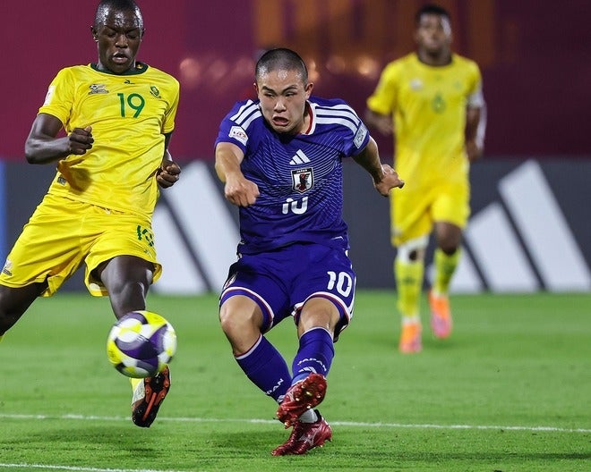 カタールで開催中のU-17ワールドカップ。グループステージでB組を首位通過した日本は、現地11月15日にラウンド32で南アフリカと対戦。3-0で完勝を収めた一戦で、エースが待望の今大会初ゴールを挙げ、16強進出に貢献した。