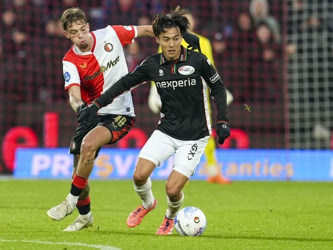 佐野、塩貝健人、小川航基の日本人3選手が所属するNECは現地11月23日、エールディビジ第13節で上田綺世と渡辺剛を擁するフェイエノールトとアウェーで対戦し、4-2の勝利を収めた。