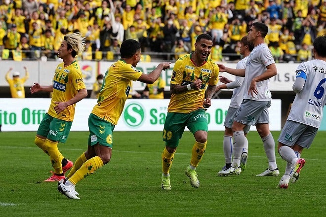 C・ジュニオが自ら得たPKで先制ゴールを決め、チームは5-0の快勝。声援に応えた。(C)SOCCER DIGEST