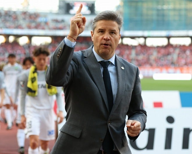 試合後のフラッシュインタビューで、リカルド・ロドリゲス監督は「とても価値あるポジティブな勝利だった」と喜ぶ。「なかなか期待通りにビルドアップできない部分もありました。ただ、我々も攻撃的に戦い、複数ゴールを決めることができ、細谷も素晴らしいパフォーマンスを表現してくれました」と評価する。