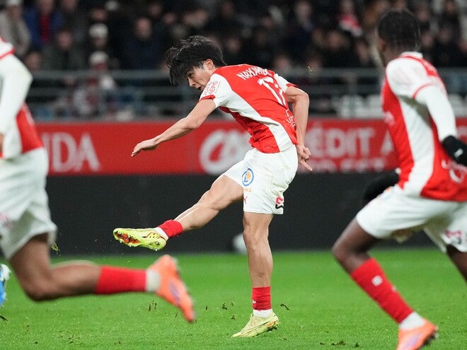 この一戦に、前節のモンペリエ戦(2-0)でゴールを決めた中村は先発。すると1点リードの30分、敵陣ボックス手前の中央でボールを受けると、素早い反転から迷わず右足を一振り。鋭いミドルシュートをゴール左上に突き刺した。