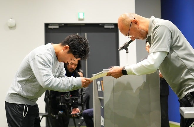 日本サッカー協会の山本昌邦技術委員長兼ナショナルチームダイレクターと、ニチバン株式会社の中村勲上席執行役員コンシューマー営業統括本部長、村石和武執行役員コンシューマー営業統括本部ヘルスケア担当部長などから激励とともに、修了証書や記念品が贈られました。