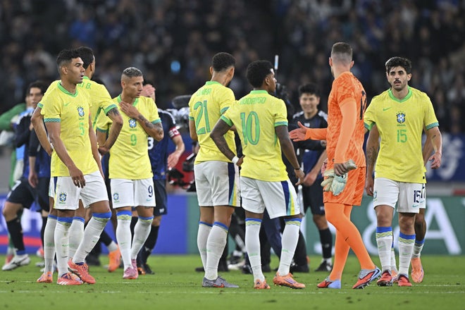 日本に敗れたブラジル。写真:金子拓弥(サッカーダイジェスト写真部)