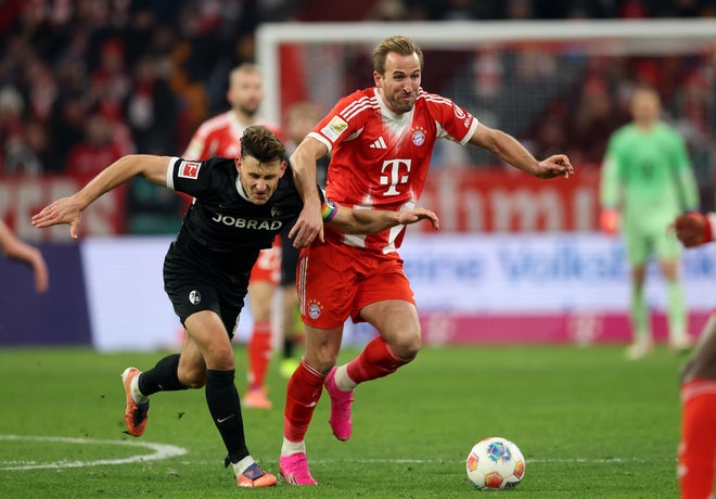 ホームでフライブルクを6-2で下したバイエルン(赤)。(C)Getty Images