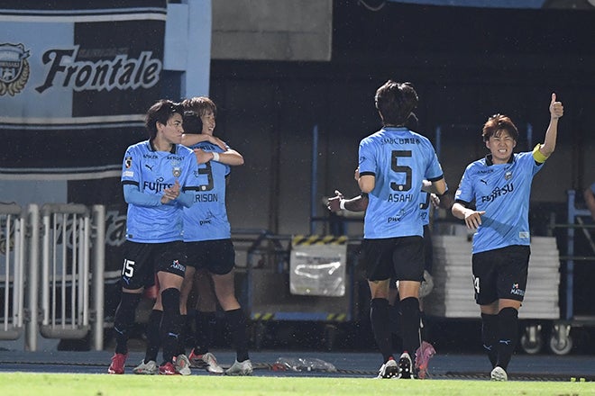 【画像】10分にゴールを決めた山本悠樹チームメイトと抱擁を交わした!|写真:鈴木颯太朗