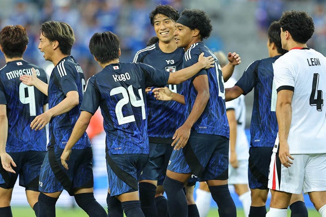 【厳選ショット】ジャーメイン良の得点を祝福するイレブン!|写真:梅月智史(サッカーダイジェスト写真部/現地特派)