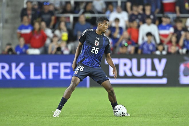 望月ヘンリー海輝:採点5.5|迫力ある攻め上がりは好印象だったが、失点シーンで簡単にクロスを許してしまうなど、守備では後手に回るシーンが散見された。写真:金子拓弥(サッカーダイジェスト写真部/現地特派)