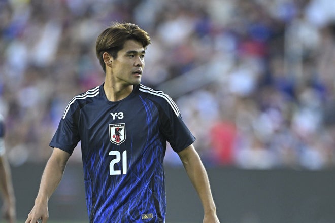 佐野海舟:採点5.5|2度のシュートブロックは光るも、パスミスからピンチも。ボールも奪いきれず、ミドルシュート以外は攻撃でも寄与できなかった。写真:金子拓弥(サッカーダイジェスト写真部/現地特派)