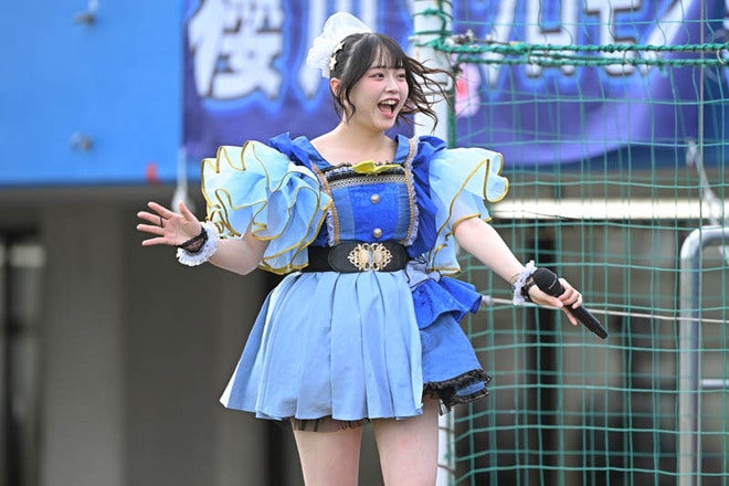 スタジアムを華やかに盛り上げる! 人気女性アイドルグループが三ッ沢で熱いパフォーマンス。リーダーは横浜FCのスタジアムMC