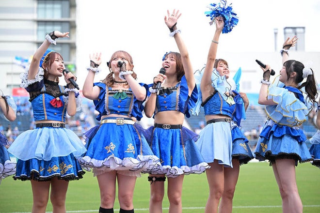 スタジアムを華やかに盛り上げる! 人気女性アイドルグループが三ッ沢で熱いパフォーマンス。リーダーは横浜FCのスタジアムMC