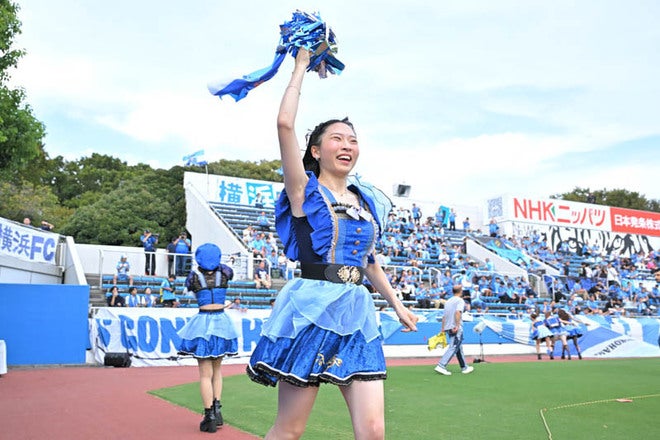 スタジアムを華やかに盛り上げる! 人気女性アイドルグループが三ッ沢で熱いパフォーマンス。リーダーは横浜FCのスタジアムMC