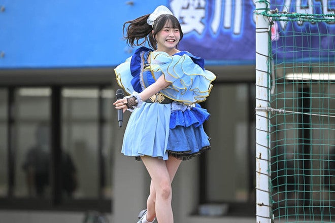 スタジアムを華やかに盛り上げる! 人気女性アイドルグループが三ッ沢で熱いパフォーマンス。リーダーは横浜FCのスタジアムMC