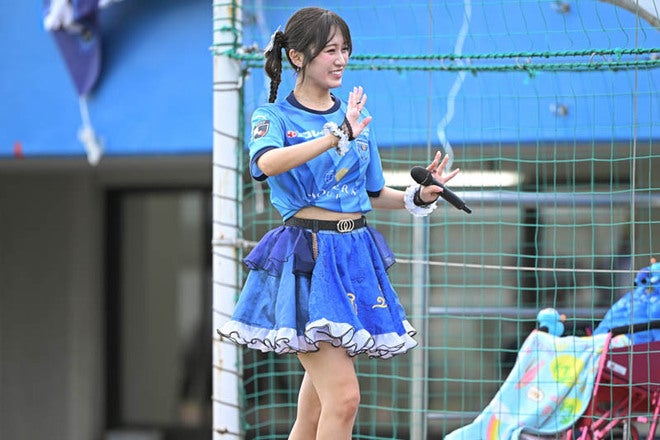 スタジアムを華やかに盛り上げる! 人気女性アイドルグループが三ッ沢で熱いパフォーマンス。リーダーは横浜FCのスタジアムMC