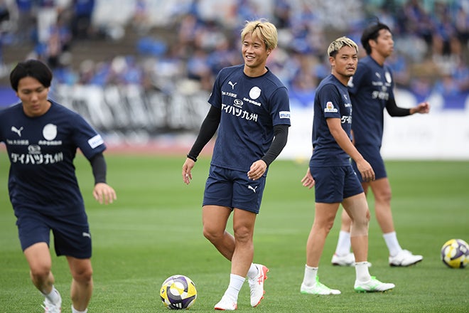 【画像】試合前ウォーミングアップに笑顔を見せた落合陸!|写真:鈴木颯太朗