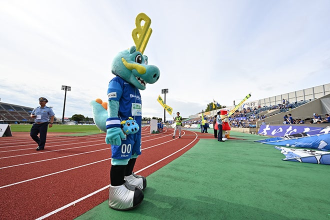 【画像】お友達のマスコットとの周回中、他のお友達を置き去りにしてしまい、直立不動で待つブラウゴン!|写真:鈴木颯太朗