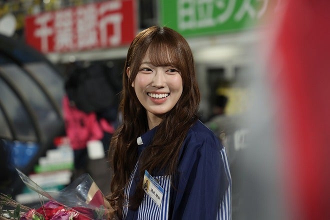 人気アイドル『日向坂46』の清水理央さんがレイソル本拠地に来場! 試合前には花束贈呈やキックオフセレモニーも