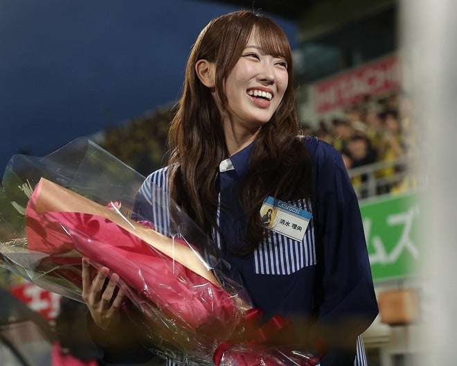 • 【画像】人気アイドルがスタジアムを華やかに!『日向坂46』清水理央さんのスペシャルフォトを一挙紹介!