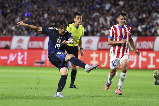 小川航基(89分OUT):採点6.5|先発抜擢に応え、強烈なミドルシュートでやや幸運な代表10点目。他にも好機はあったが決められなかった。後半はややプレゼンスが希薄に。写真:梅月智史(サッカーダイジェスト写真部)