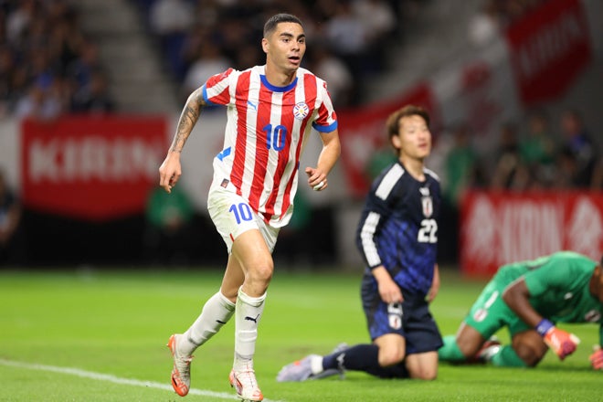 【厳選ショット】21分、パラグアイの10番ミゲル・アルミロンに先制点を奪われる|写真:梅月智史(サッカーダイジェスト写真部)