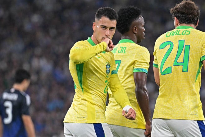 【画像】32分、アーセナルに所属するガブリエル・マルチネッリに得点を奪われ2点のリードを許す。|写真:金子拓弥(サッカーダイジェスト写真部)