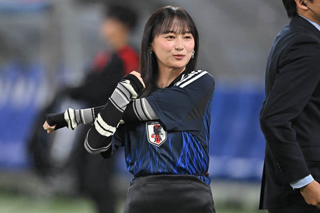 【画像】日本対ブラジルの中継を盛り上げた影山優佳|写真:金子拓弥(サッカーダイジェスト写真部)
