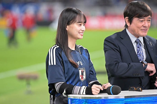 【画像】日本対ブラジルの中継を盛り上げた影山優佳|写真:金子拓弥(サッカーダイジェスト写真部)