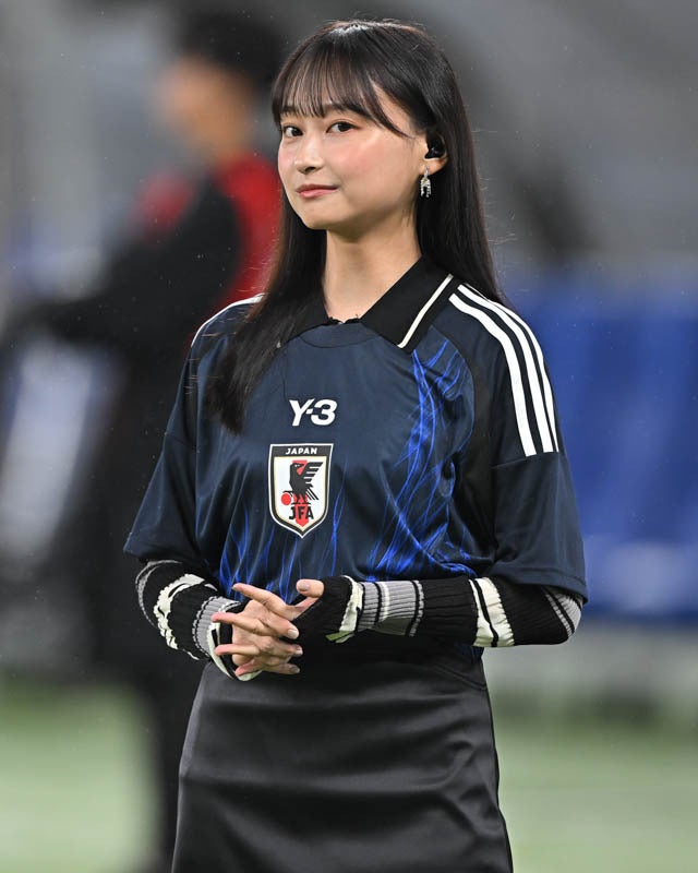 【画像】日本対ブラジルの中継を盛り上げた影山優佳|写真:金子拓弥(サッカーダイジェスト写真部)