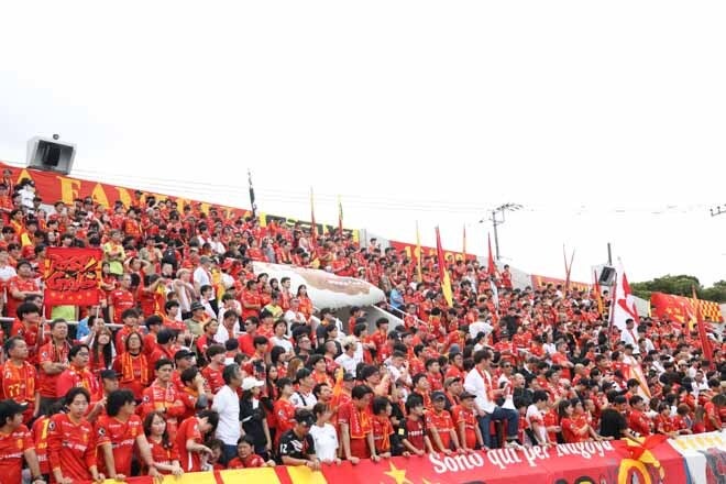 • 【画像】敵地・ニッパツ三ツ沢球技場に集結した名古屋グランパスサポーター!