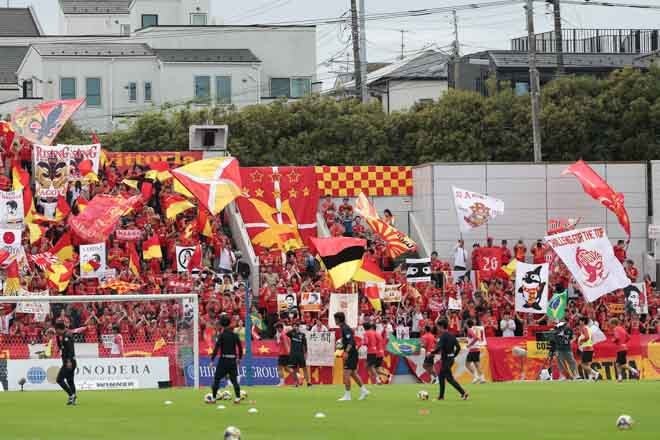 • 【画像】敵地・ニッパツ三ツ沢球技場に集結した名古屋グランパスサポーター!
