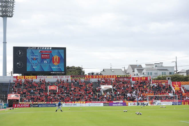 • 【画像】敵地・ニッパツ三ツ沢球技場に集結した名古屋グランパスサポーター!