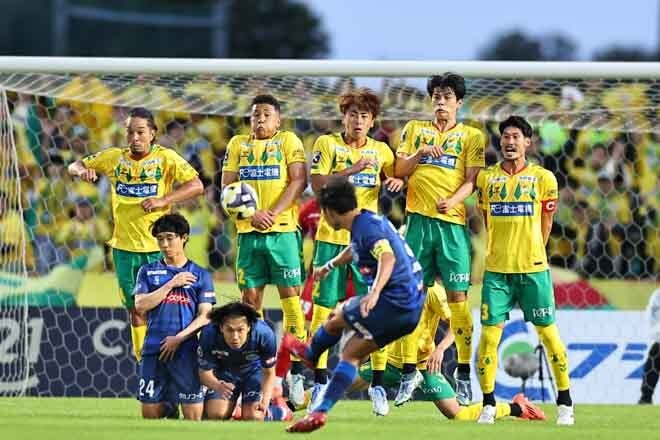【PHOTO】大崎航詩(水戸)のFKに壁となって立ちはだかる千葉の選手たち|写真:梅月智史(サッカーダイジェスト写真部)