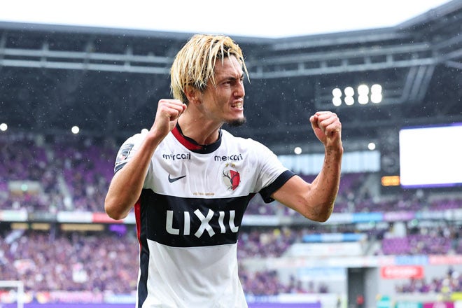 【PHOTO】試合後サポーターを鼓舞する鈴木優磨|写真:梅月智史(サッカーダイジェスト写真部)