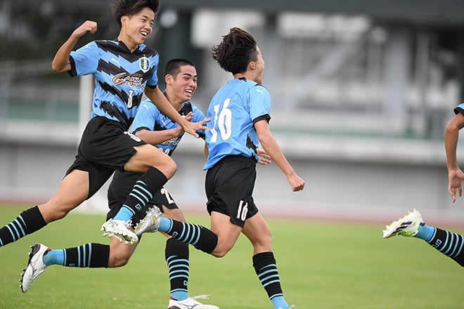 【選手権岡山県予選決勝PHOTO】岡山学芸館1-0就実|延長前半4分、栢森太希(16番/3年/FCグランリオ鈴鹿出身)が、こぼれ球に反応し右足一閃!ゴールを決め均衡を破る!|写真:鈴木颯太朗