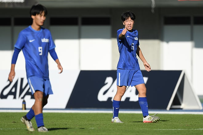【選手権栃木県予選決勝PHOTO】矢板中央2-1宇都宮短大附|グッドサインを出す櫻井一平(2年/アメージングアカデミー出身)|写真:鈴木颯太朗
