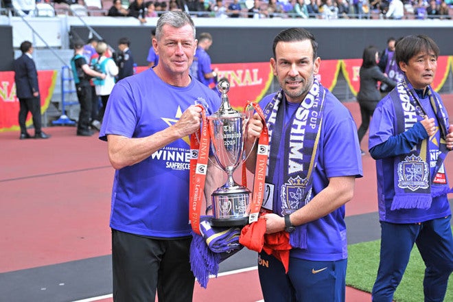 【画像】ミヒャエル・スキッベ監督(左)、セハット・ウマルコーチ|写真:金子拓弥(サッカーダイジェスト写真部)