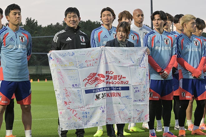 【画像】トレーニング前にはスポンサーから応援メッセージ付きの幕が進呈!|写真:鈴木颯太朗