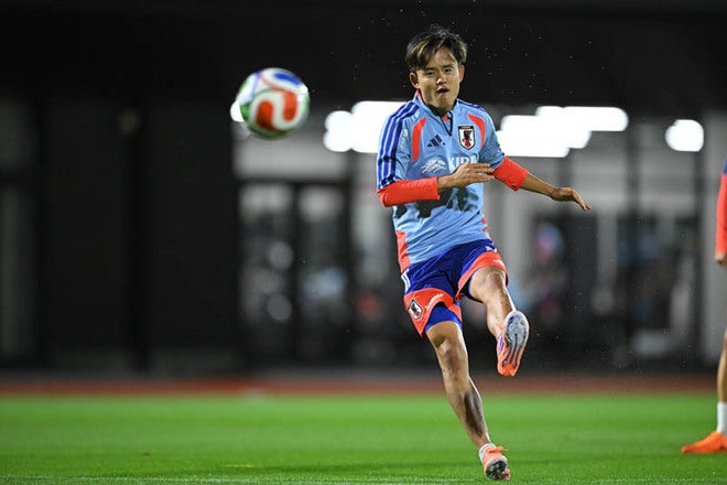 【画像】鋭いシュートを放つなど存在感発揮!日本代表2日目のトレーニングに参加した久保建英!