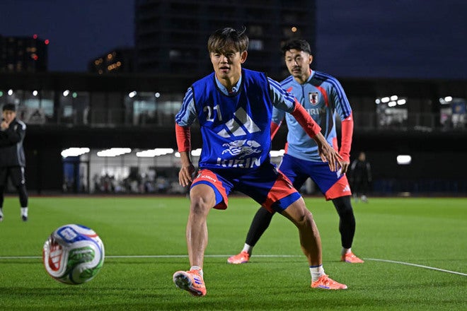 【画像】鋭いシュートを放つなど存在感発揮!日本代表2日目のトレーニングに参加した久保建英!