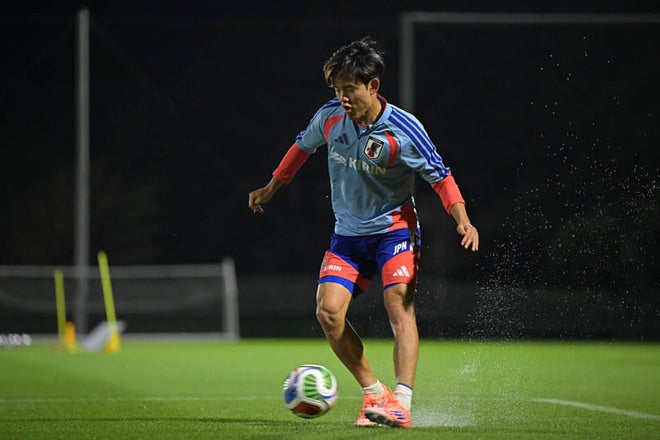 【画像】鋭いシュートを放つなど存在感発揮!日本代表2日目のトレーニングに参加した久保建英!