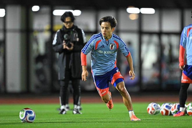 【画像】鋭いシュートを放つなど存在感発揮!日本代表2日目のトレーニングに参加した久保建英!