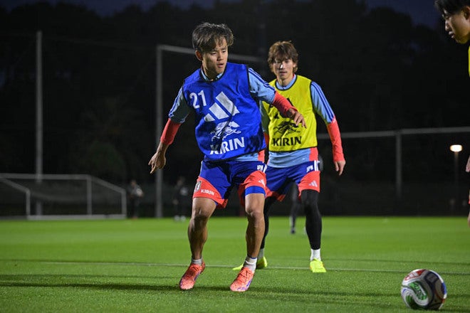 【画像】鋭いシュートを放つなど存在感発揮!日本代表2日目のトレーニングに参加した久保建英!
