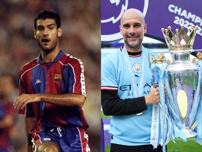 ジョゼップ・グアルディオラ(左:1994年/右:2023年)|写真:Getty Images
