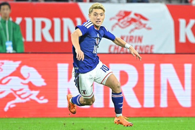 【画像】鮮やかにニアを抜く追加点!右サイドで躍動した日本代表のNo.10堂安律!