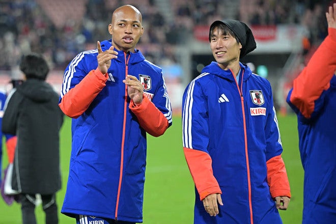 【画像】小久保玲央ブライアン、鎌田大地|写真:金子拓弥(サッカーダイジェスト写真部)
