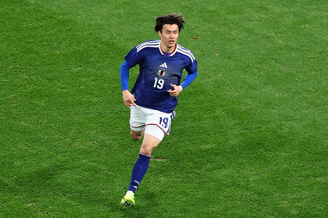 小川航基(67分OUT):採点5.5|立ち上がりのビッグチャンスを決めきれず。23分のヘッドは惜しくもクロスバーを直撃した。写真:梅月智史(サッカーダイジェスト写真部)