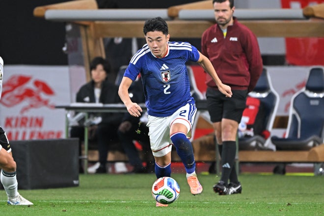 菅原由勢(HT OUT):採点6|右ウイングバックで久々の先発。久保との連携でサイドを崩し、23分には好クロスで決定機を演出した。写真:金子拓弥(サッカーダイジェスト写真部)