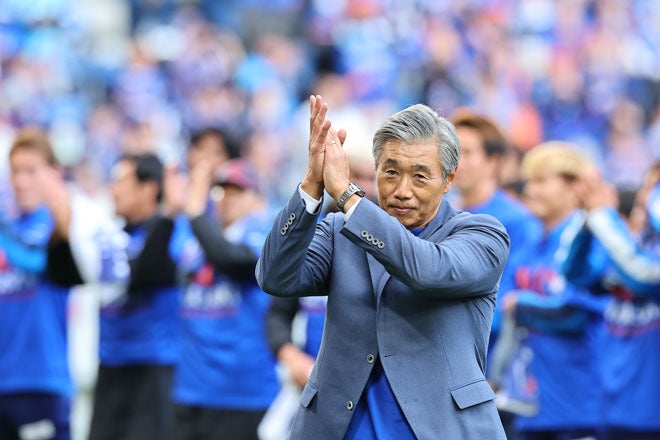 【PHOTO】サポーターに挨拶する高木琢也監督|写真:梅月智史(サッカーダイジェスト写真部)